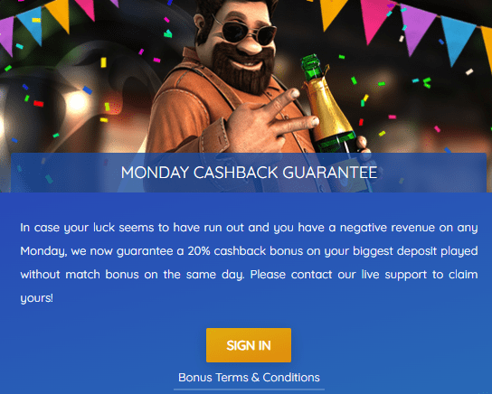 Keep in mind that you have to contact support and claim the cashback after depositing on Monday – it is not automatically credited.